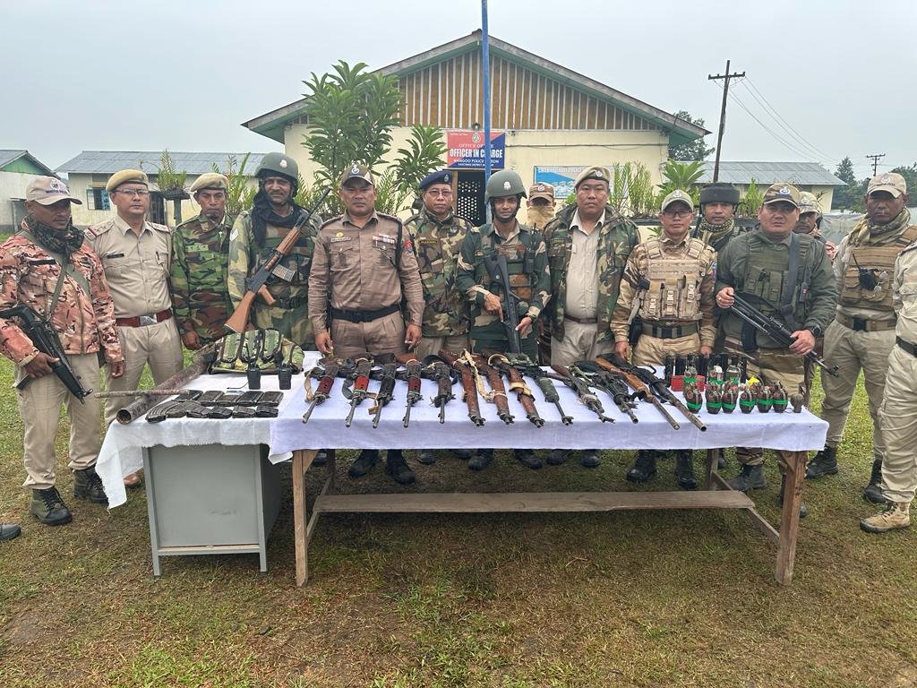 Police said that the combined security forces during their ongoing operation recovered the arms and ammunition from Kangpokpi, Bishnupur, Kakching and Churachandpur districts.