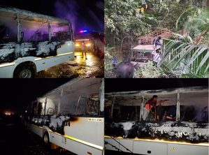 The official said that around 80 students, 50 guardians and three teachers in three buses went to Bashgram in Mohanpur as part of their winter holidaying. When they were returning, one of the buses caught fire but the students and several women guardians miraculously saved themselves from a major tragedy as they swiftly came out from the bus.