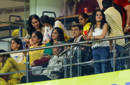 Chennai, April 25 (IANS) Fans who had gathered at the Chepauk stadium here for the Indian Premier League (IPL) match between the Chennai Super Kings (CSK) and the Sun Risers Hyderabad (SRH) on Friday night were in for a pleasant surprise as Tamil star Ajith Kumar turned up to watch the match along with his family.