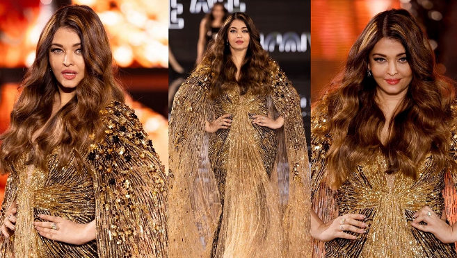 The walk happened on a runway near the Eiffel Tower. Aishwarya was dressed in a golden shimmery gown and looked her brightest, but that did not impress everybody on the Net.