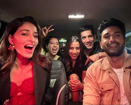 In the picture shared by Ananya on her social media story, the group is seen inside a car, capturing a candid and joyful moment.