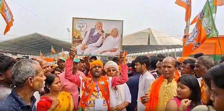 Since Sunday morning, BJP supporters were seen arriving in groups, carrying party flags and raising slogans, as the venue gradually filled up.