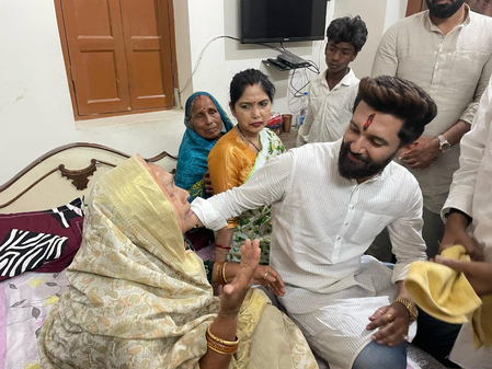 Chirag Paswan, who arrived via helicopter, inquired about her health and the recent disturbing incident involving the locking of her bedroom and bathroom, along with her belongings being thrown out of the ancestral home.
