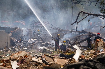 According to preliminary reports, the plane encountered trouble moments after take-off and plummeted onto the hostel premises, causing widespread panic and destruction in the area.