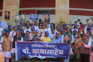 The Opposition legislators paid homage to BR Ambedkar at the Constitution Chowk and took out a morcha from there to Vidhan Bhavan where they raised slogans like “Jai Bhim, Jai Bhim” and “Ambedkar, Ambedkar.”