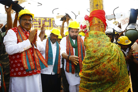 Hyderabad, Jan 29 (IANS) Union Minister for Tribal Affairs Jual Oram, along with Union Minister for Coal and G. Kishan Reddy, on Thursday offered prayers at Sammakka–Saralamma Jatara, considered as Asia’s biggest tribal festival, at Medaram in Telangana’s Mulugu district.