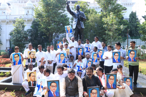 Hyderabad, Dec 19 (IANS) Leaders of Telangana’s ruling Congress on Thursday staged a sit-in at the Ambedkar statue at the Legislature premises, demanding the sacking of Union Home Minister Amit Shah for his shameful remarks on Babasaheb Ambedkar.