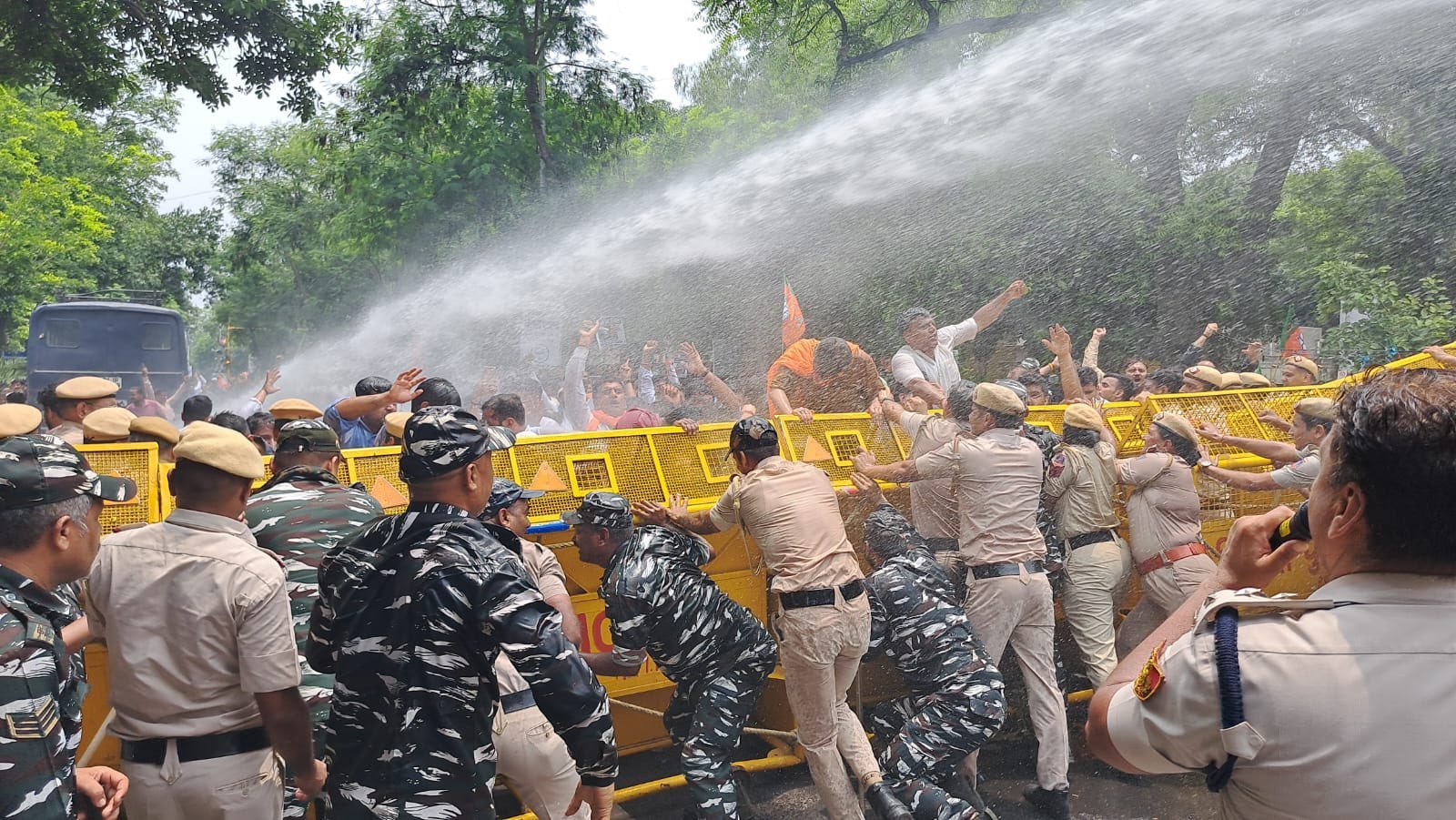 Scores of BJP workers, and leaders under the leadership of its Delhi president Virendra Sachdeva, participated in the agitation in front of the AAP headquarters here.