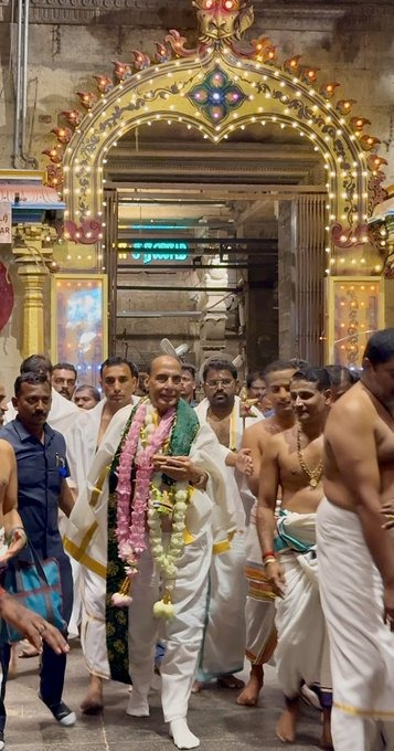 Rajnath Singh took to social media ‘X’ and said, “Prayed at the sacred Sri Subramanya Swami temple in Tiruchendur (Tamil Nadu). Feeling blessed to experience the divine energy of this Temple.”