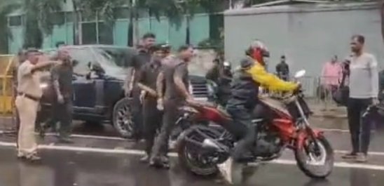 Anjara got up with the bike even as Thackeray’s police and security detail rushed towards him to help.