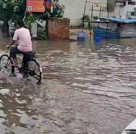 Soon, key roads and residential areas were submerged, some under 3-4 feet of water, disrupting both vehicular and pedestrian movement. Trees were uprooted in several areas, causing power outages and adding to the chaos.