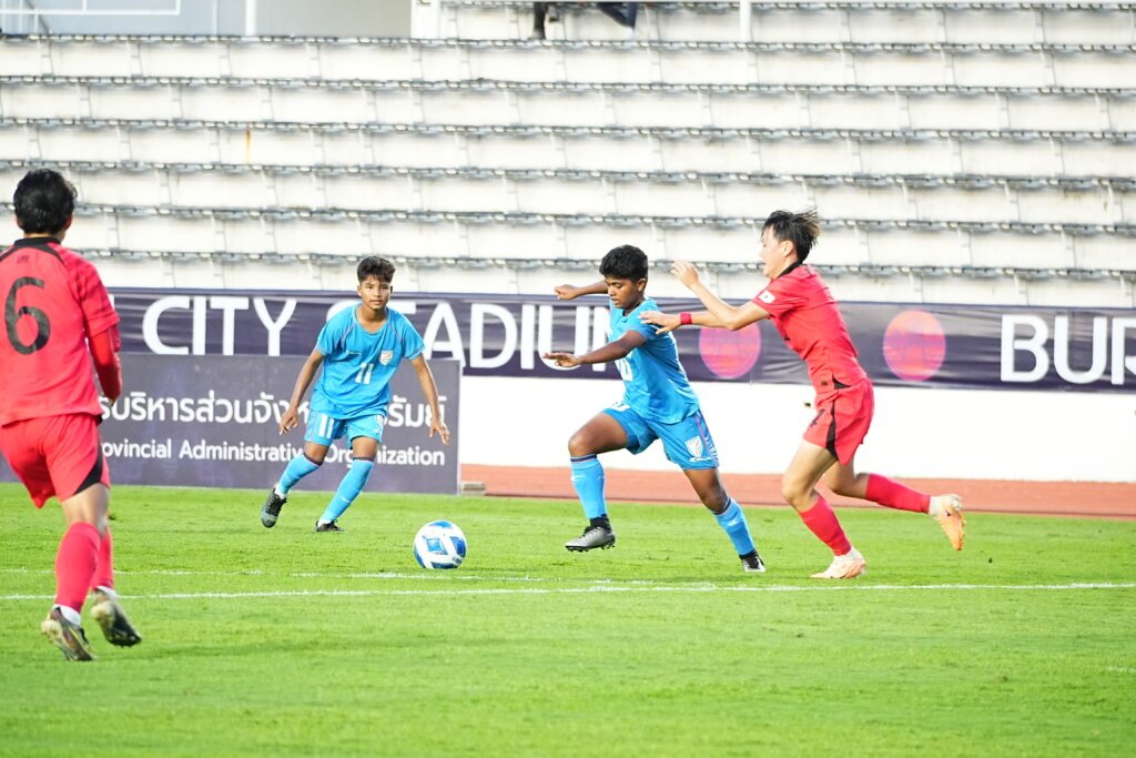 Not that the Indians never threatened the Korean goal. Their best chance came two minutes before the half time when striker Sulanjana Raul stole the ball on the left, dashed into the box and finding the Korean custodian out of position, took a prompt shot. Woon Sumin saved her citadel at the last moment as she managed to tip the ball over.