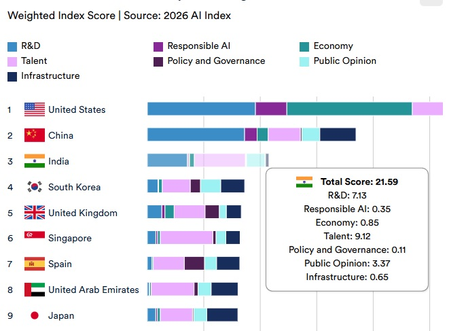 India comes second in economic competitiveness in the 2026 Global Vibrancy Index (GVI) produced by Stanford University’s Institute for Human-Centred AI.