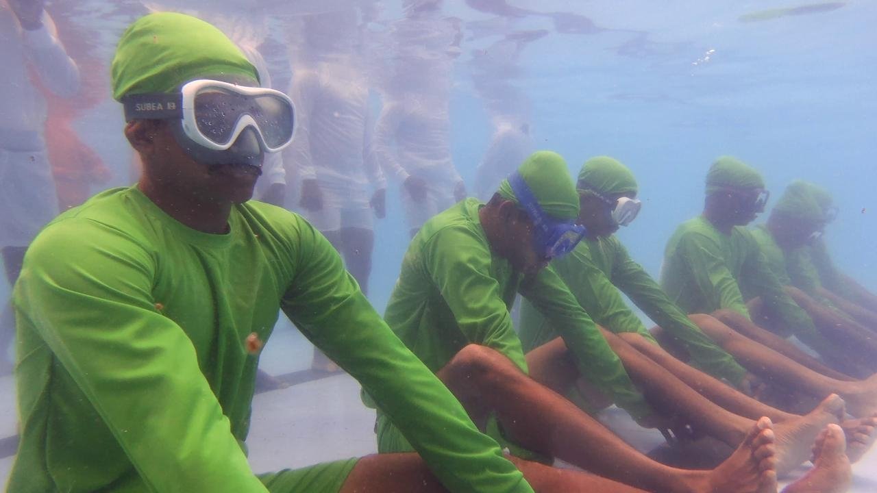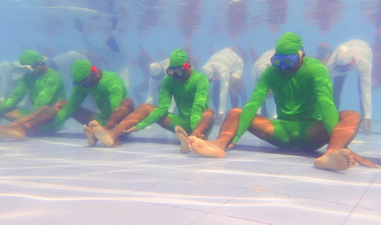 The underwater Yoga was performed by the well trained ‘Amphibious Warriors’ of Pangode Military Station under the guidance of expert Yoga instructor and free diver Jyothi Singh from Bond Water Sports Pvt Ltd.