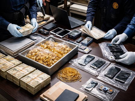Evidence relating to immovable properties linked to the group has been identified, including high-value acquisitions suspected to be derived from proceeds of crime.