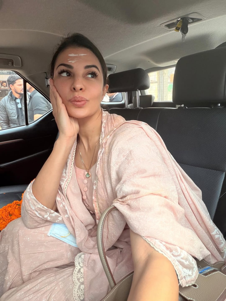 During her time there, Jacquiline also seemed to have offered prayers. Sharing a glimpse of her spiritual side on social media, she was seen posing for a selfie in the car. Wearing a blush-pink salwar kameez, along with light makeup, Jacquiline was seen making a pout in the picture captioned, “Varanasi”, followed by a white heart emoji.