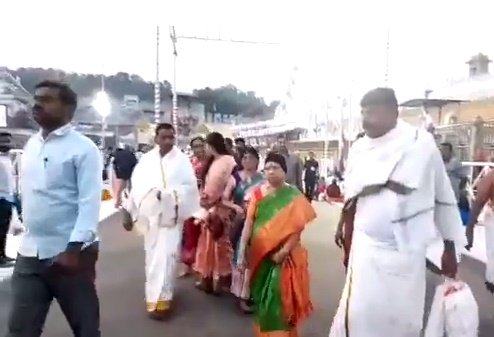After reaching Tirupati by a special flight from Hyderabad, Shobha along with some family members had a darshan this morning.