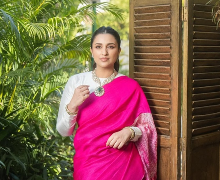 Taking to Instagram, Parineeti, who welcomed her first son in October 2025 with husband Raghav Chadha, shared a string of pictures of her elegant look. The actress looked radiant in a bright pink drape. She paired it with minimal accessories and subtle make-up.