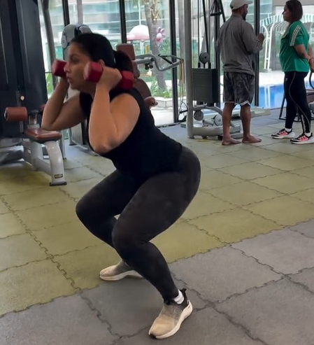 Taking to Instagram, Mannara shared a video of herself sweating it out in the gym, performing chakrasan, core workouts, weighted squats and burpees.