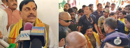 Ashoknagar (Madhya Pradesh), March 19 (IANS) Madhya Pradesh Chief Minister Dr Mohan Yadav, fresh from his visit to the revered Maa Janaki Temple, also known as Karila Dham, found himself in an unexpected situation. As he was addressing the media after descending the temple’s staircase, the unthinkable happened — the staircase gave way under the collective weight of the crowd.