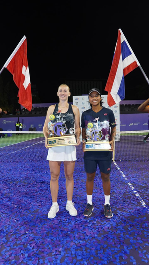 Teichmann took the first game of the second set but Sawangkaew refused to back down and made it 1-1. After six games played, the scores were 3-3 with both players matching their strides. Teichmann was dragging the rallies longer to tire Sawangkaew out and forced her into making errors. Sawangkaew on the other hand continued to play aggressively with acrobatic shots near the net. Teichmann then won two crucial games in a row but Sawangkaew took one back right down the wire to make it 5-4. In the final set of the final, Teichmann showed an incredible level of class to win four points in a row and then eventually claimed the set 6-4 to to win the big match in straight sets.
