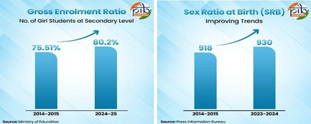 The government has, through different initiatives, supported by community participation, NGOs, schools, and Anganwadis, made measurable gains in girls’ survival, education, and empowerment.