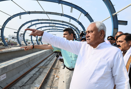 Patna, June 11 (IANS) Bihar Chief Minister Nitish Kumar on Wednesday conducted an on-site inspection of the Patna Metro Rail Project, reviewing progress at key stations including Malahi Pakadi and Bhootnath Metro Station.