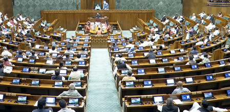 As the Lower House convened on Friday, the opposition members started raising slogans and assembled in the well of the House, demanding the resignation of Union Minister Hardeep Singh Puri over an alleged connection with Jeffrey Epstein, a convicted American sex offender.