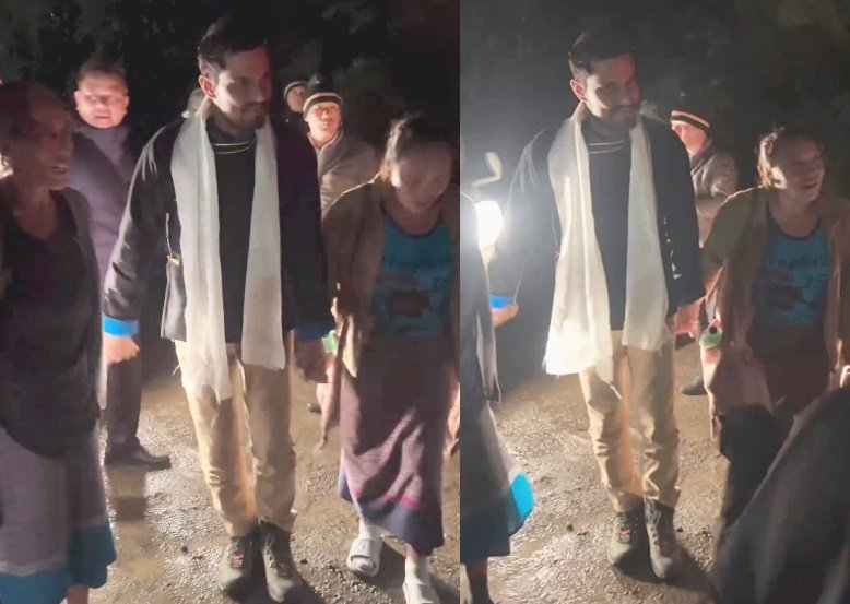 He further mentioned, “They descended from the hill village near by and waited on the road for our arrival greeted everyone with the ‘Khada’ around the neck and the welcome drink ‘aara’ which puts you in a good mood straight away.. and .. you got to have 3 of them called ‘Timrey’. The bonhomie and the love they showed their leaders and me was so enriching and heartening to see ‘kharanche’.”