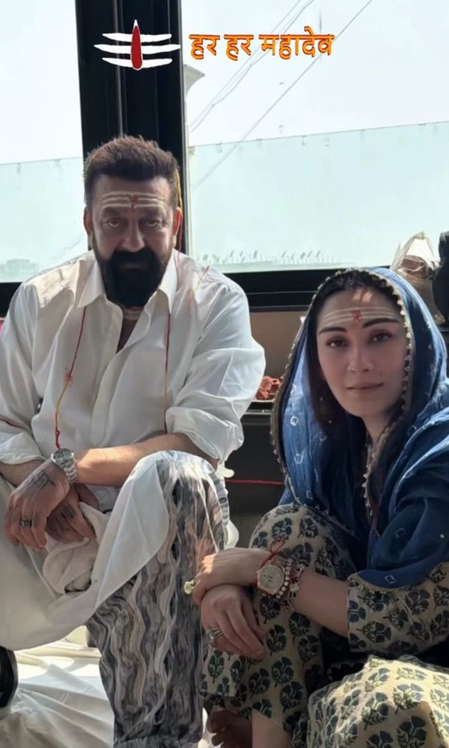 Sanjay and Maanyata both took to their Instagram stories, respectively, where they shared two photographs from the puja. They did not reveal the location of where they sought divine blessings.