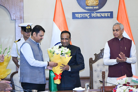 After taking the oath, Governor Devvrat, Chief Minister Devendra Fadnavis, and Deputy Chief Minister Eknath Shinde congratulated Bhimanwar by presenting him with bouquets.