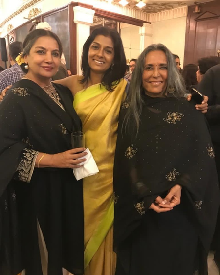 In the photo, Shabana is seen twinning with Deepa in black attire with identical dupattas, while Nandita opted for a yellow saree.