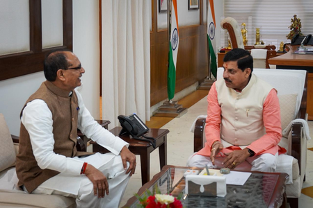 Chief Minister Yadav received Chouhan at his official residence warmly, following which the two leaders exchanged greetings and held discussions on a wide range of issues of mutual interest and Madhya Pradesh politics.