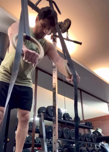The clip, which included the text, “No shortcuts. Just work”, showed Sidharth working on his upper body using gymnastic rings.