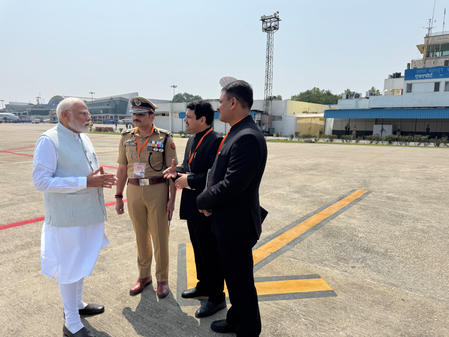 A powerful image from the airport displaying PM Modi in an intense and focused deliberation with top officials has a strong message. The moment powerfully spotlighted the PM’s commitment to a zero-tolerance policy on crimes, particularly in his parliamentary constituency of Varanasi, and Uttar Pradesh at large.