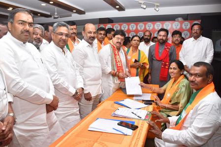Ramchander Rao, a High Court advocate and former Member of Legislative Council (MLC), filed his nomination in the presence of BJP national general secretary Sunil Bansal, Kishan Reddy, Union Minister of State Bandi Sanjay Kumar and other leaders.