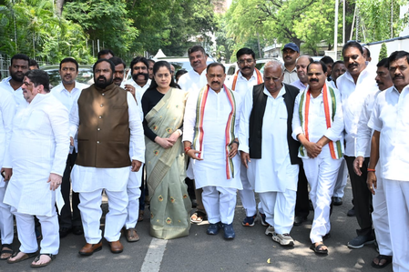 A delegation of Congress leaders led by Telangana Pradesh Congress Committee (TPCC) President Mahesh Kumar Goud met the Governor at the Raj Bhavan and thanked him for approving the bills and forwarding it to the President of India for her approval.