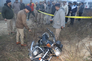 Hathras SP Chiranjeev Nath Singh said during routine patrolling on Ruheri cut, Thana Hathras police station area, three people on a bike were asked to stop but they increased the speed to flee away and fired at the police which was retaliated.