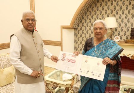 Madhya Pradesh’s Governor Patel gave a warm welcome to Anandiben Patel, and presented a special cover on sickle cell awareness prepared by the Department of Posts to her counterpart.